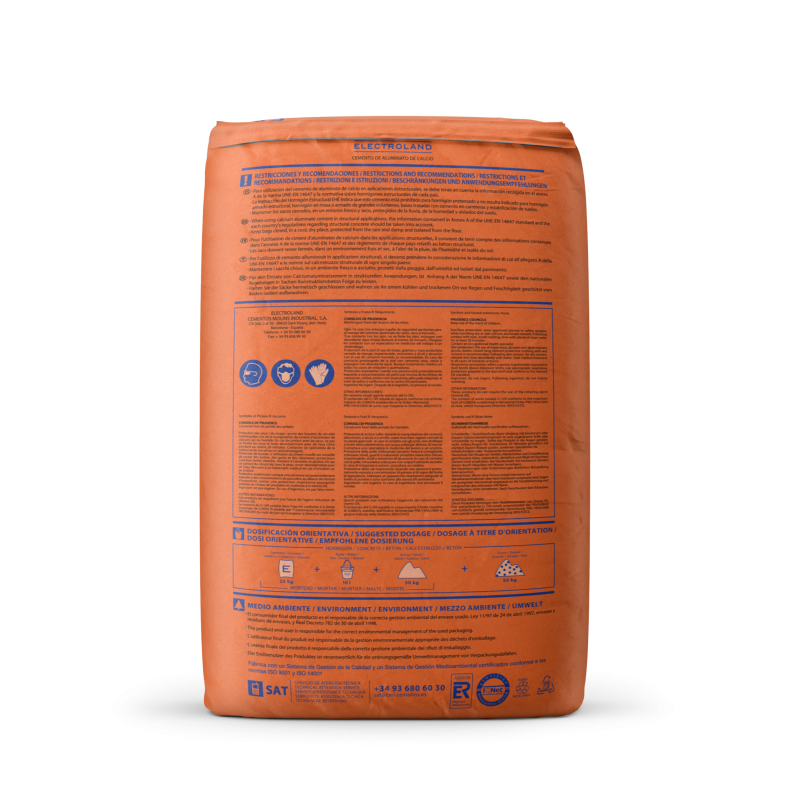 Un durcissement rapide. Résistances élevées à l’abrasion, ainsi qu’aux chocs mécaniques. Excellentes résistances aux attaques chimiques et bactériologiques. Recommandé pour des climats très froids. Exellent allié dans la formulation de mortiers spéciaux. Ciment réfractaire (bon comportement jusqu’à 1300º C)