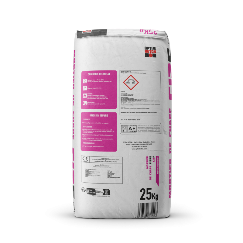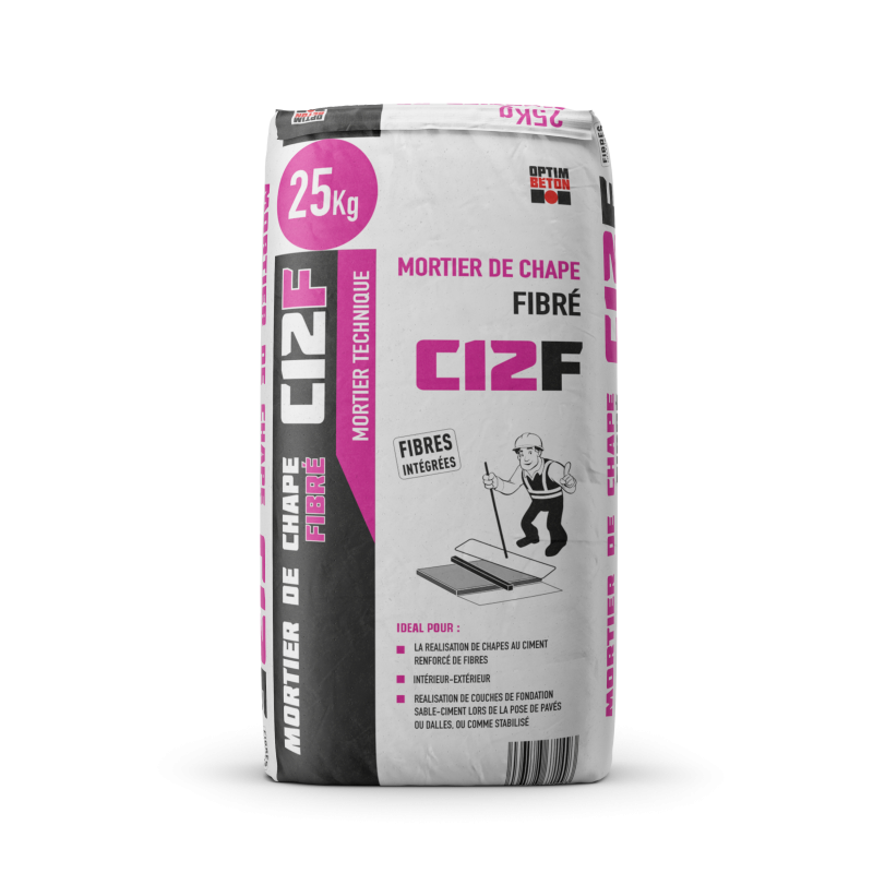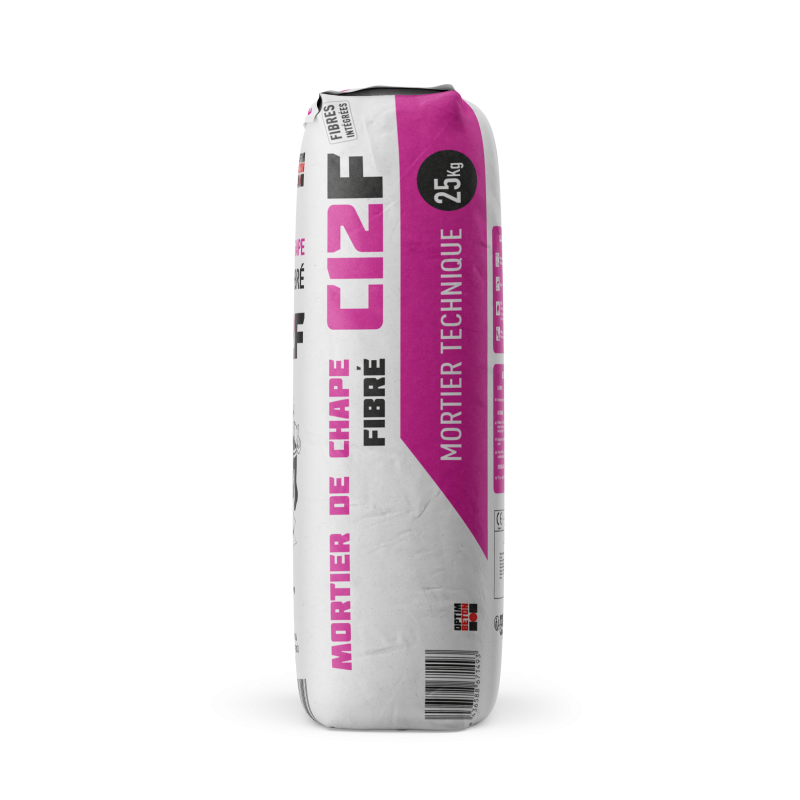 Mortier de Chape Fibré C12F est indiqué pour la réalisation de chapes à base de ciment renforcé de fibres, à l’intérieur et à l’extérieur, pour la pose d’une couche de fondation sable-ciment pour carrelages ou pavés et pour la stabilisation des sols non compacts.
