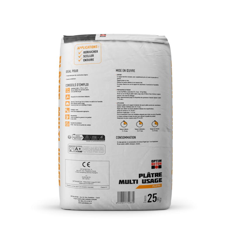 Plâtre multi-usage conçu pour réaliser différents travaux en intérieurs (toits, balcons, etc…).