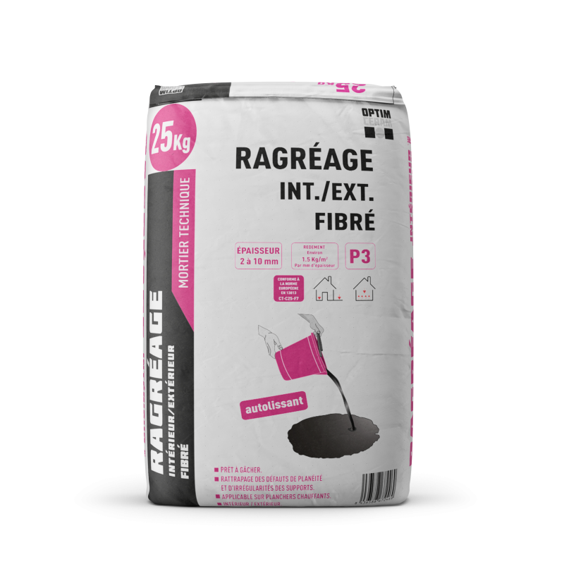 Mortier de ragréage autonivelant de classe CT-C25-F7 pour rattraper des défauts de planéité ou d’irrégularités du sol intérieur et extérieur.